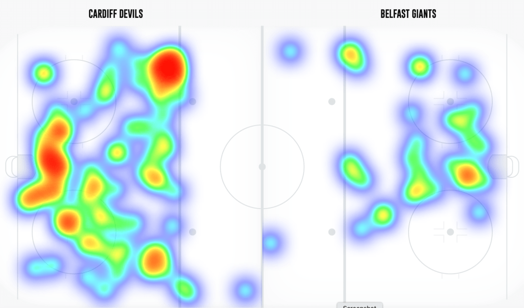 7. Devils controlled the dots and created the better chances, with 4 high danger chances to Belfasts lone attempt. The xG count would have had the game end 3:1 in favour the good guys, which shows you need to take your chances. Belfast did that, despite the pressure cooker they faced.