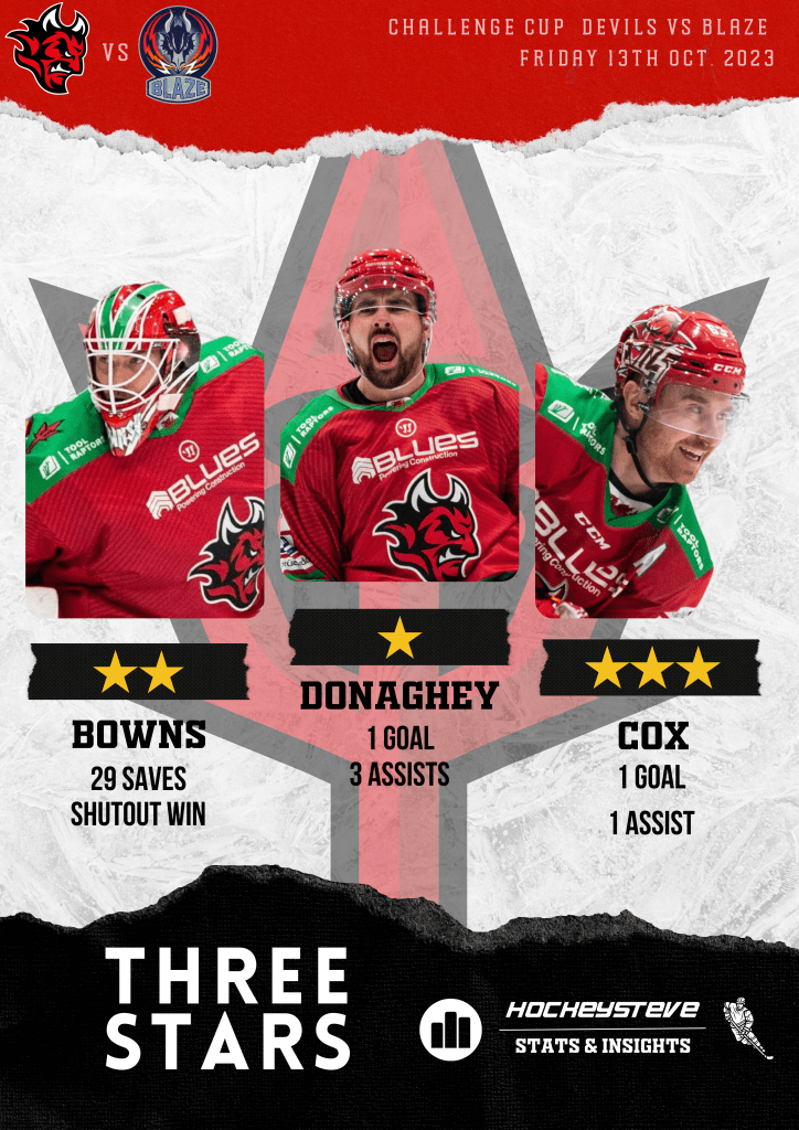 - Tempo is key and it generates momentum, which started early for the home team and continued the full 60. As stated in the build up article https://hockeysteve.co.uk/2023/10/11/a-look-ahead-to-friday-vs-blaze/ – intensity and execution would be the focus and it showed. 74 shots, 43 SOG, 5 in net, 2PPG and an improved shot efficiency % (11.63) helped to dominate their opponents.