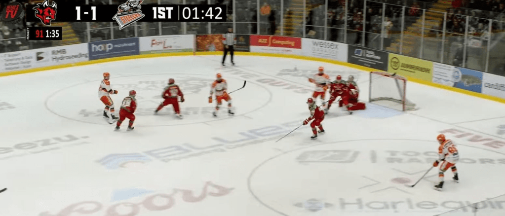 Then, the push back started. It did go either way, in a very competitive end to end game, however a penalty was gifted to the visitors who easily capitalised on their advantage. 10 game minutes later, they done it again, with the door wide open as Bowns failed to cover post to post on the classic, predictable east to west puck movement which ended the first frame 1-2 to the visitors.