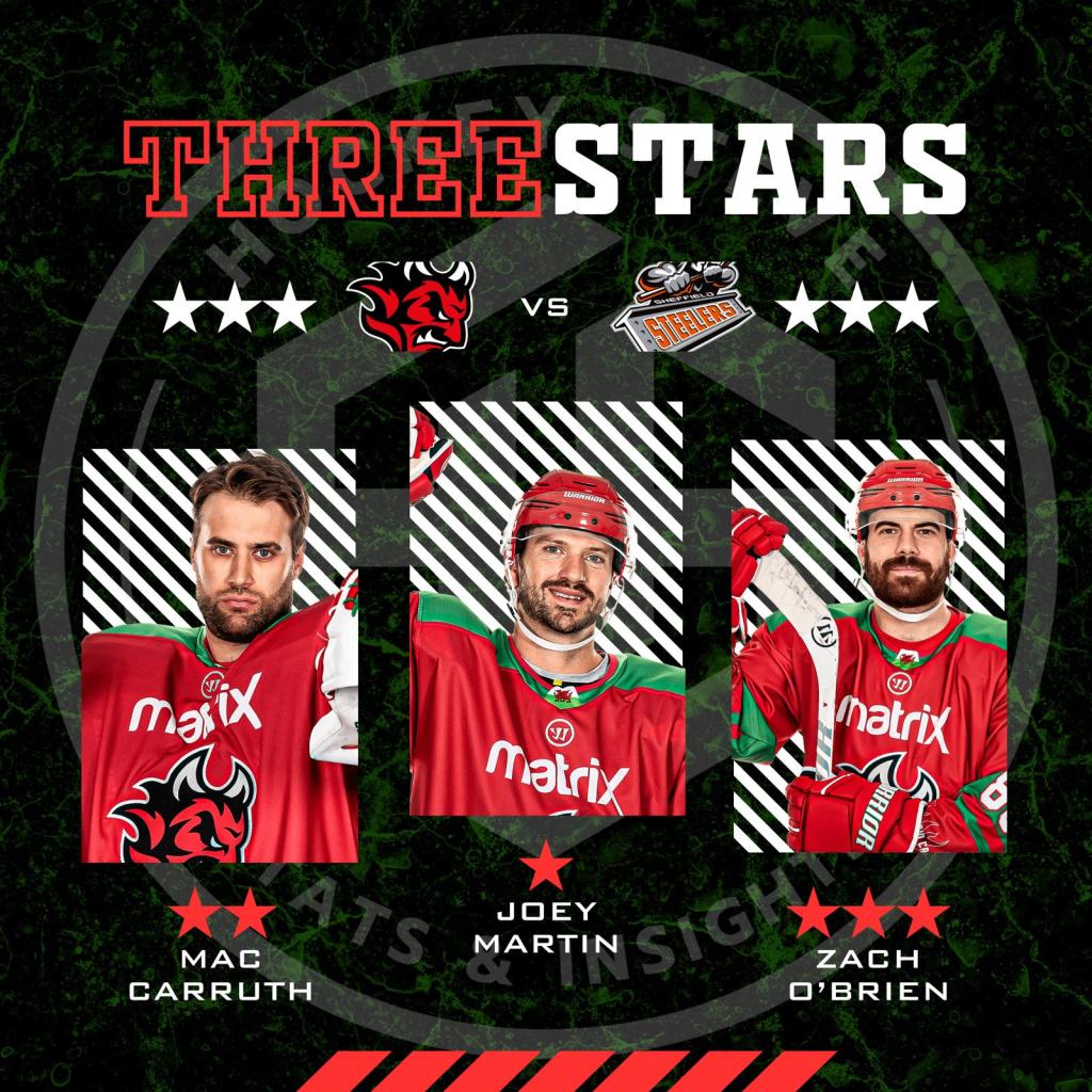 First Star; Joey Martin – Two goals and an assist helped to drive the offence for his team, a key presence all night